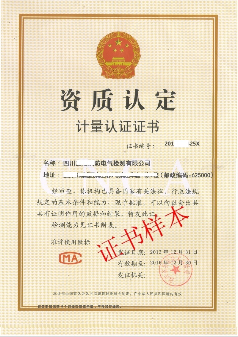 实验室资质认定/计量认证证书样本